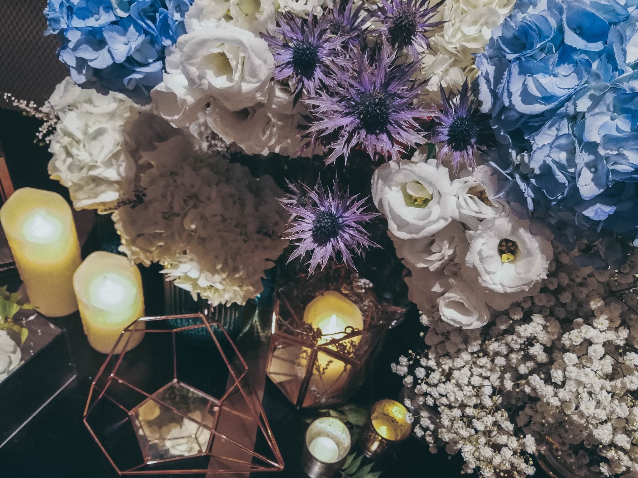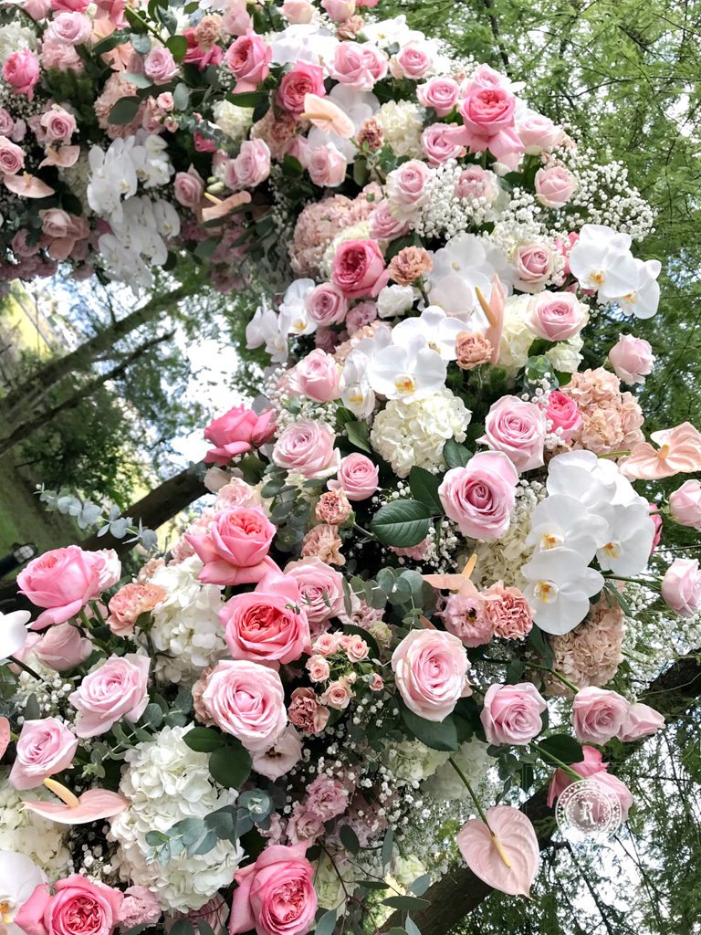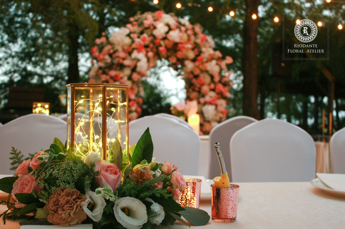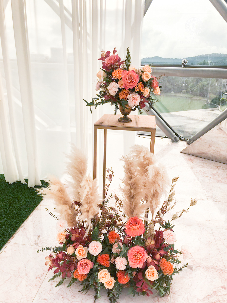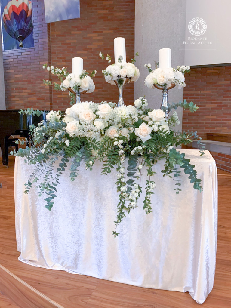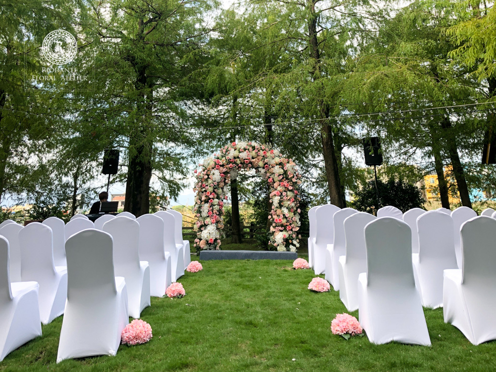 婚禮花藝佈置設計案例實照、主題拍照區花藝佈置、新人LOGO設計、禮金相本桌花藝佈置、婚宴花藝佈置整體設計規劃