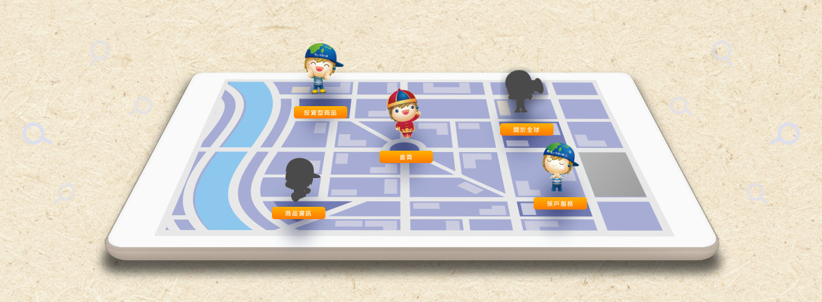 運用既有的吉祥物「樂活寶」與大眾進行對話,我們把「全球」的概念融入設計中,讓樂活寶在以圓球為基底的城市中奔跑,而城市的組成則以真實全球人壽所在地:松山火車站以及周邊景點發展而成,增加畫面的互動與趣味性。