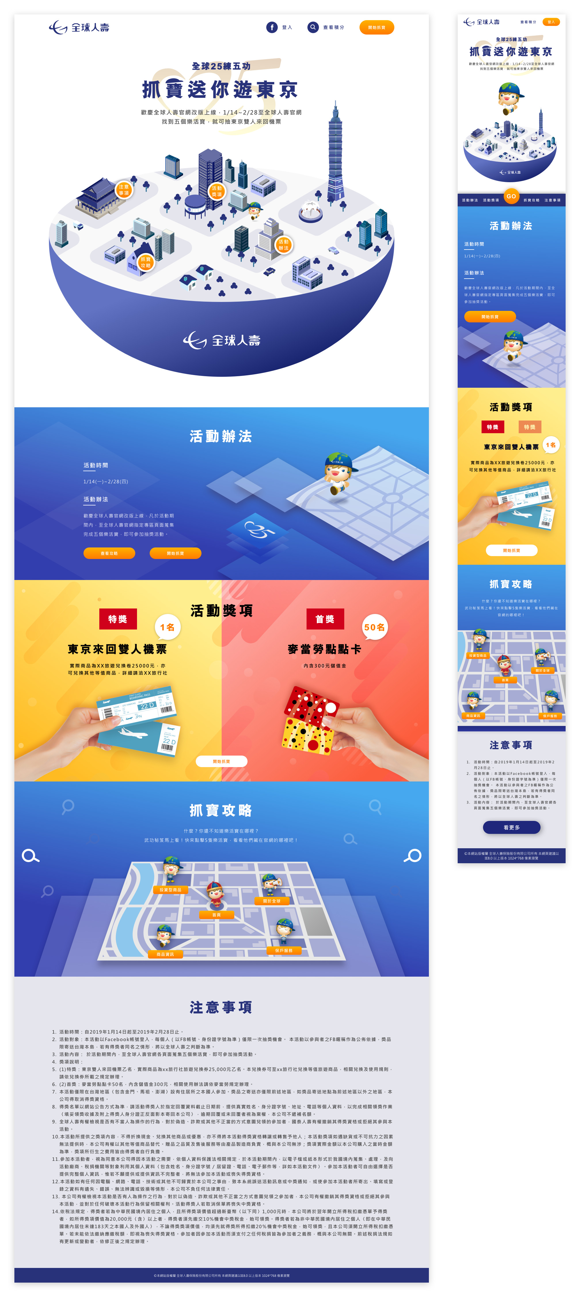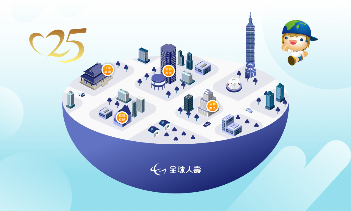 全球人壽於2019年邁入了第25週年,因官網也於本年度改版,因此舉辦了抽獎活動「全球25練武功,抓寶送你遊東京」,希望用這個活動同時曝光新版官網給大眾們知道。