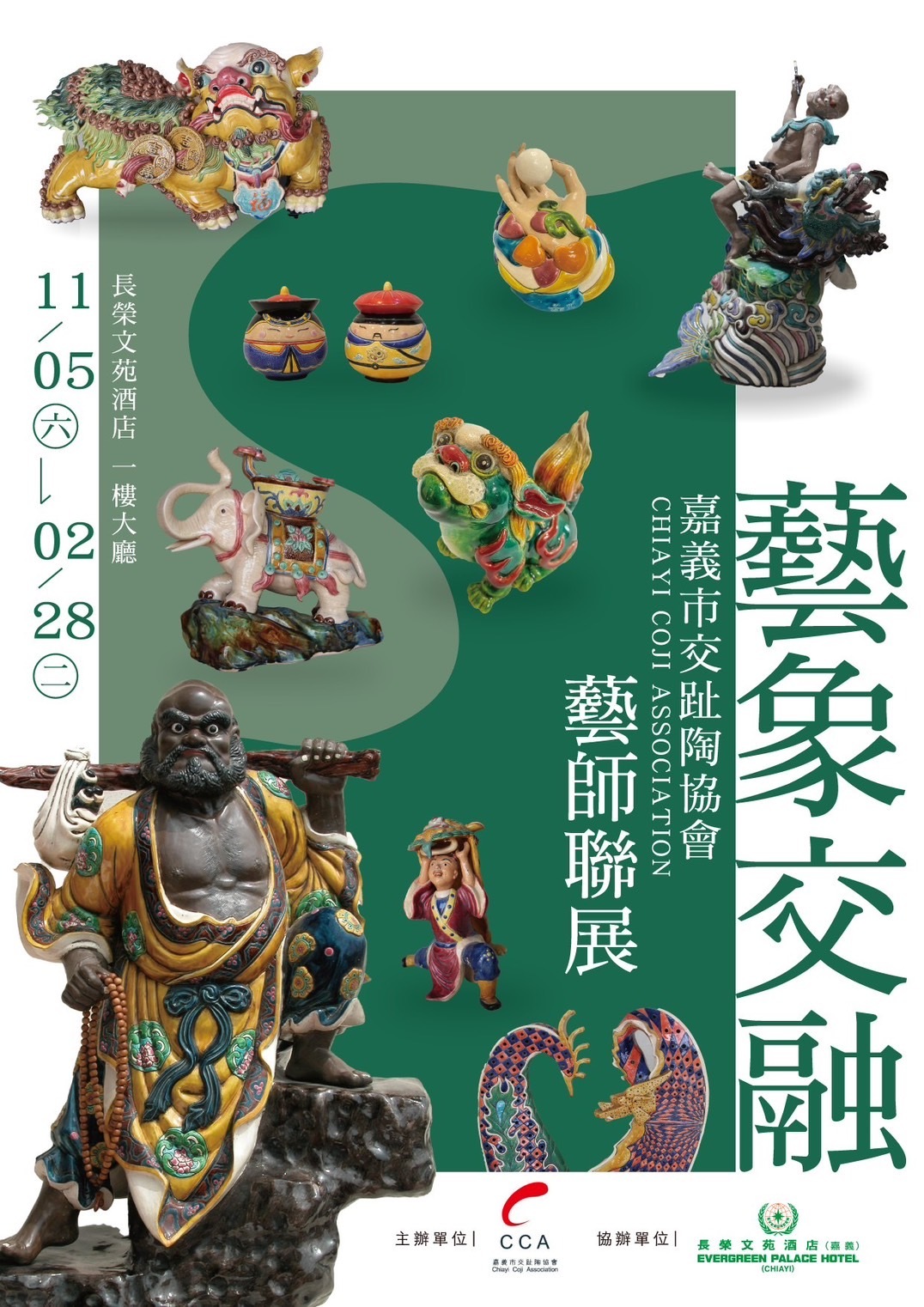 嘉義市交趾陶協會為了推廣交趾陶藝術文化,結合國內16位知名交趾陶藝師,2022/11月5日上午於長榮文苑酒店(嘉義)1樓大廳舉辦「藝象交融」藝師聯展開幕典禮,由嘉義市交趾陶協會理事長戴明堂主持,代表嘉義市長黃敏惠出席的市府文化局代理局長葉國樑、嘉義長榮文苑酒店總經理蘇筱裴、劉婕羚經理、該協會理監事、總幹事林嘉華及會員等到場,歡迎各界蒞臨參觀。