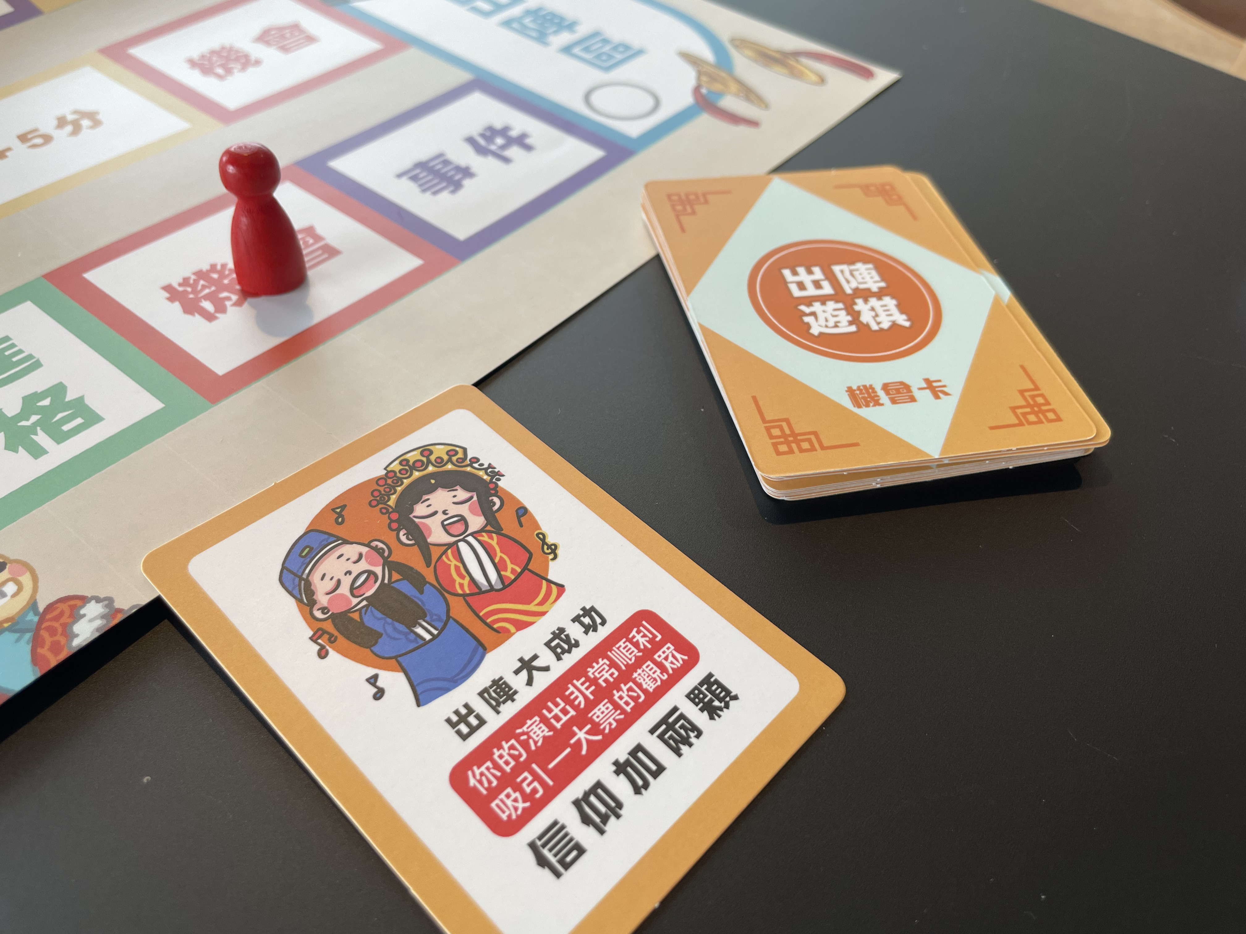 為了讓小朋友們也可以更加熟悉北管戲曲,將樂器、陣頭以及戲曲等元素加入到桌遊裡,在玩樂的過程中漸漸熟悉各種樂器組成的樂隊,在馬路上遊行的道具意涵以及使用似顏繪所繪製的角色卡,來讓各位認識北管們的大家長們。
